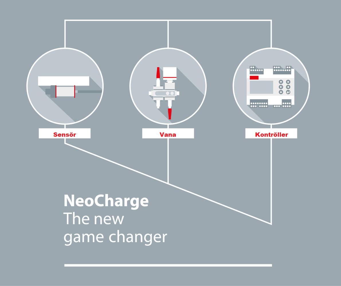 NeoCharge, endüstriyel soğutma sistemlerini optimize etmek için eksiksiz bir çözümdür. Sensörler, kontrol valfleri ve elektronik kontrolör içerir.