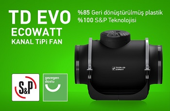 Ürün gruplarımız arasında önemli bir yere sahip olan kanal tipi fan ailemizin yeni üyesinden burada bahsetmek istiyorum. TD EVO-ECOWATT kanal tipi fan. Firmamızın çevre duyarlılığının büyük bir göstergesi olduğunu düşünüyorum. Bu yeni ürünümüz, %85 geri dönüştürülmüş plastik kullanılarak üretildi.
