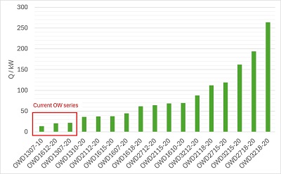 OWD serisi, selefi OW serisine kıyasla ısı eşanjöründeki ölü alanı azaltmak için tasarlanmıştır, bu da büyük bir avantajdır. Sonuç, tüm boru yüzeyinin kullanımında artan verimlilik ve ısı veriminde bir artıştır. Ayrıca, optimize edilmiş alan gereksinimi, ultra yüksek güç yoğunluğu için daha fazla sayıda borunun entegre edilmesini sağlar. Hesaplamalar, yeni yağ soğutucu serisinin CO2 eşdeğerlerini bir önceki seriye kıyasla %40'tan fazla azalttığını ve böylece sürdürülebilirliğe önemli bir katkı sağladığını göstermektedir.